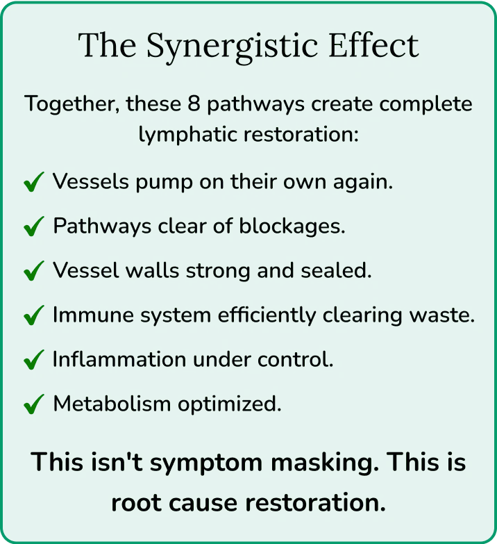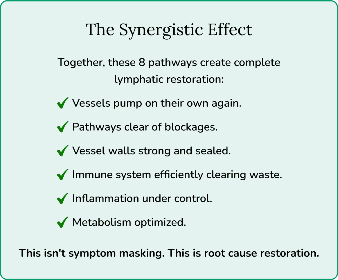Lymflowa uses capsules with therapeutic doses (100-500mg per ingredient) that are properly absorbed and work at the cellular level to restore vessel function, break down protein clogs, and strengthen vessel walls-not just make you urinate more.